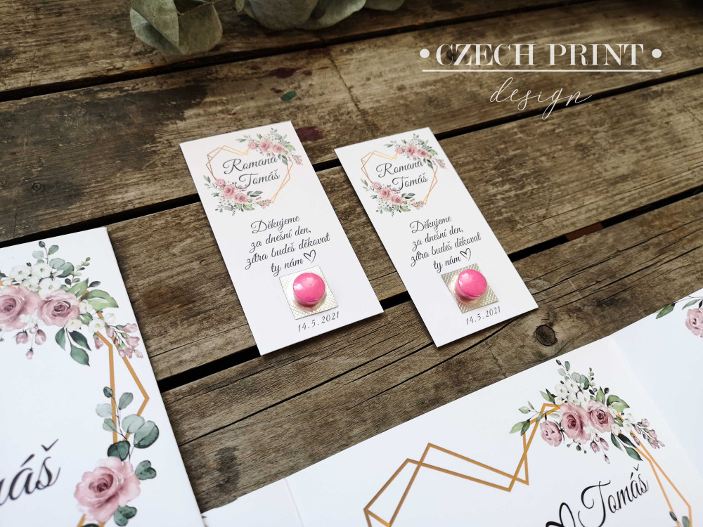 Jestliže se Vám u nás líbí další svatební tiskoviny jako oznámení, knihy nebo jmenovky, rádi vám vytvříme cokoli na přání ve stejném designu.