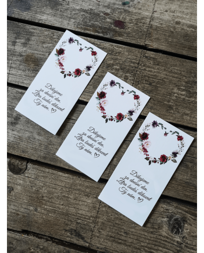Svatební kartička ibalgin v rozměru 5x9 cm s místem pro nalepení ibalginu. 300g/m2 papír.